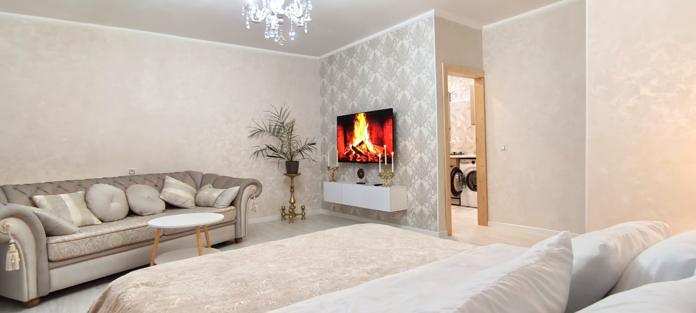 1. Всю необходимую бытовую технику (стиральную машинку, холодильник, фен, плазменный телевизор со SMARTTV, утюг, микроволновую печь, чайник, духовой шкаф)